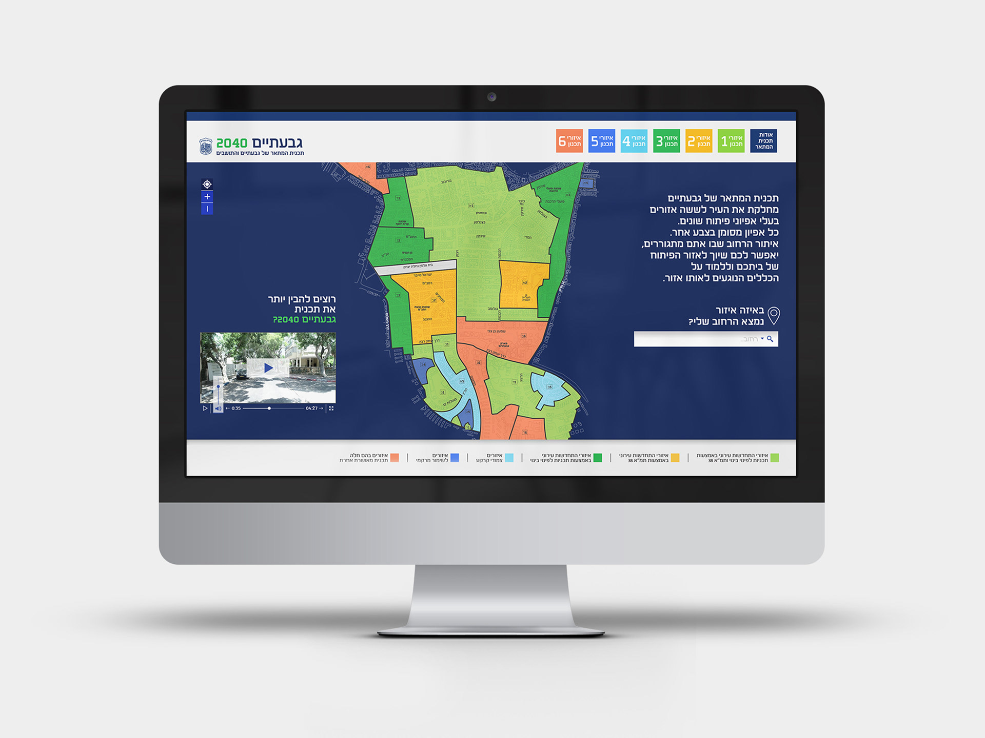 בהתמודדות עם אתגרי הצמיחה העתידיים של העיר, הושקה מערכת הסברה רחבה להנגשת תוכנית המתאר החדשה של גבעתיים. המהלך כלל עיצוב אתר ייעודי עם מנוע חיפוש נגיש לייעוד רחובות, יצירת סרטוני הדמיה של רחובות מרכזיים בעיר וסרט הסברה באורך שש דקות, המשלב אנימציה עם לייב ושיחה בגובה העיניים עם אחד מאדריכלי התוכנית. המטרה הייתה לתרגם מושגים תכנוניים לשפה פשוטה, ולהציג לתושבים את חזון העיר לעשורים הקרובים – המבוסס על הליכתיות, עירוב שימושים, תחבורה ציבורית יעילה ושיפור המרחב הציבורי. האתר, הסרט וההדמיות מייצרים יחד שקיפות, בהירות וחוויית שימוש שמהדהדת את התפיסה העירונית של גבעתיים – עיר שמתכננת קדימה, בשיתוף עם התושבים ומתוך אחריות לעתיד