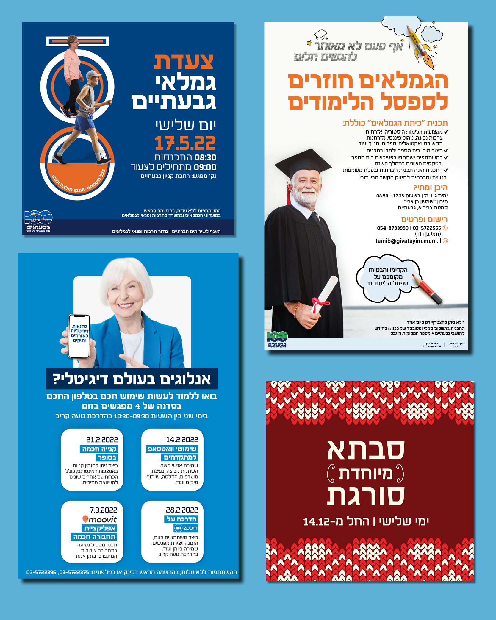 קמפיינים שונים המיועדים לגיל השלישי - תרבות, ספורט, הדרכה, עבודה ועוד