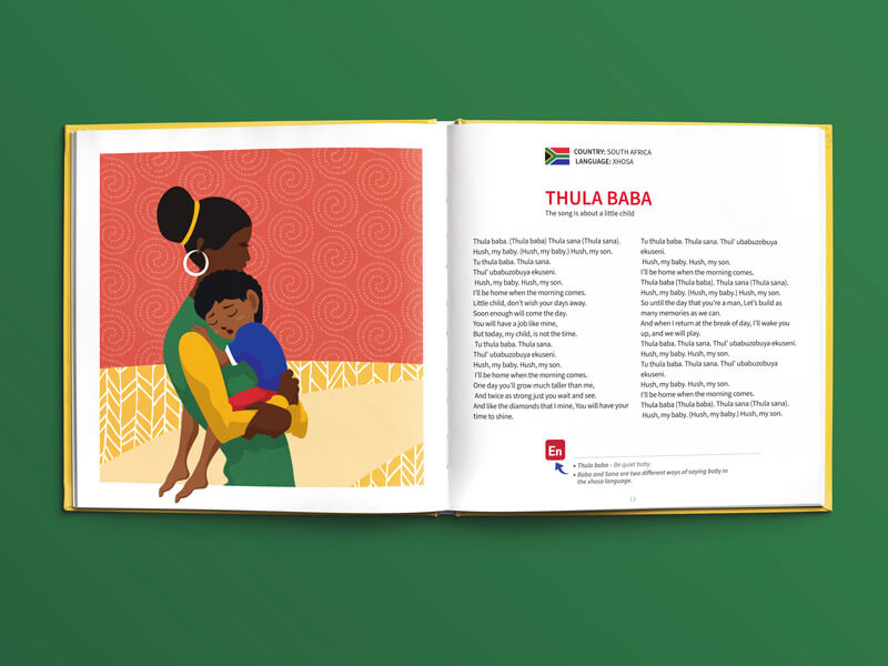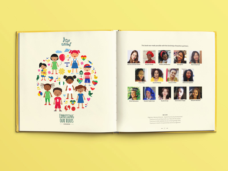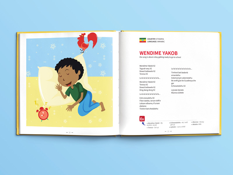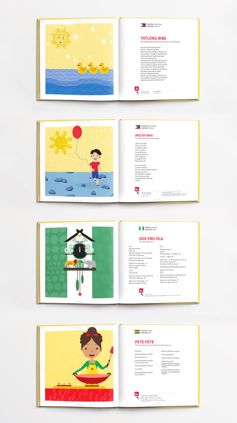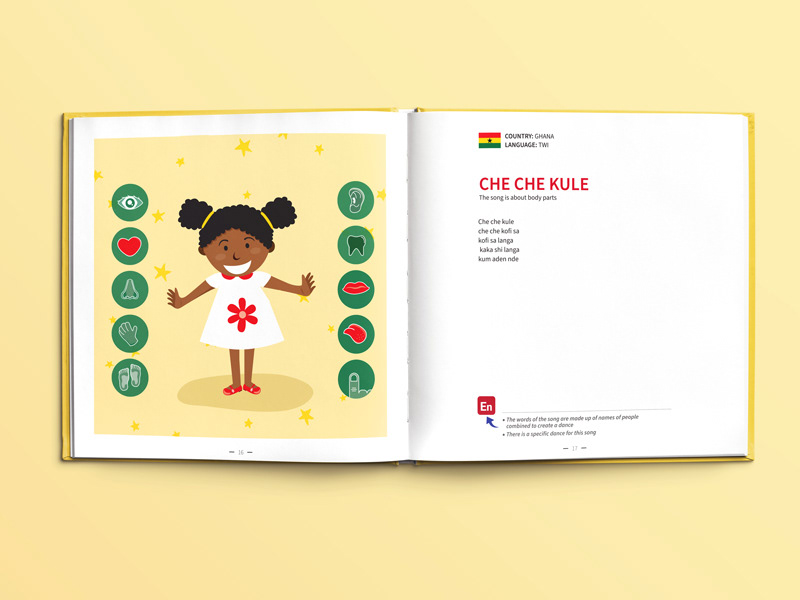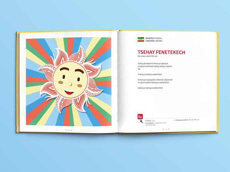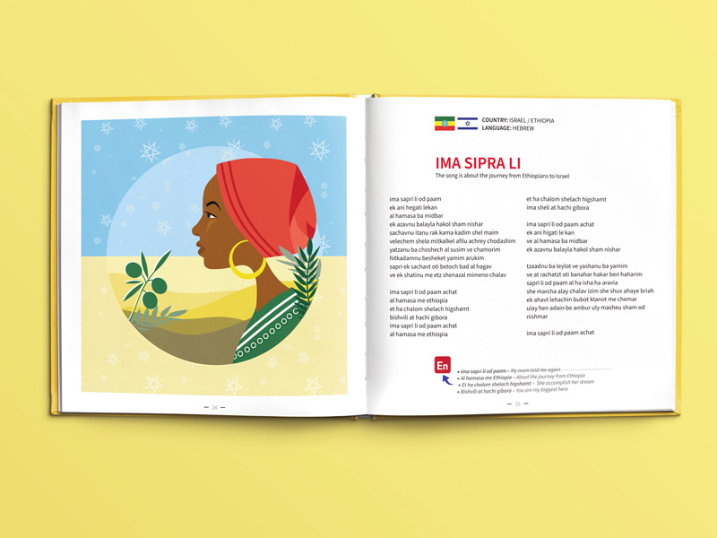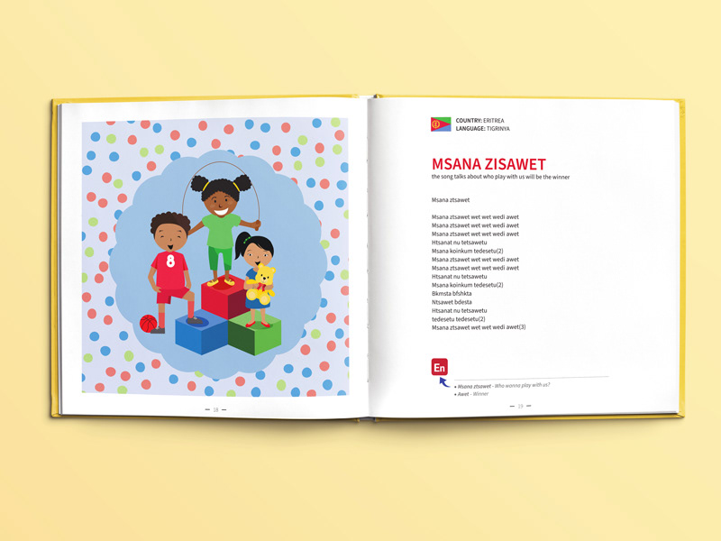 עיצוב ואיור ספר שירי ילדים רב לשוני, המיועד לגני ילדי מהגרים מתוך כוונה שהילדים יכירו זה את תרבותו של זה באמצעות הכרת השירים והמילים (פרו -בונו)
